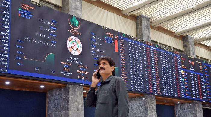 A trader monitors stock prices at the Pakistan Stock Exchange in Karachi, March 2, 2026. — OnlineKSE-100 Index settled at 157,496.1, down 3,714.57 points, or 2.3%.Index reached session high of 161,435.83, up 225.16 points, or 0.14%.Index recorded a low of 157,072.64, down 4,138.03…