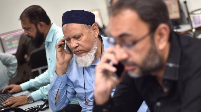 A Pakistani stockbroker monitors share prices at the Pakistan Stock Exchange in Karachi, April 8, 2025. — INPKSE-100 Index closed at 156,732.87 points, down 1,732.18 points.Session low recorded at 156,327.6 points, down 2,137.45 points.Index recorded intraday high of 159,507.41…